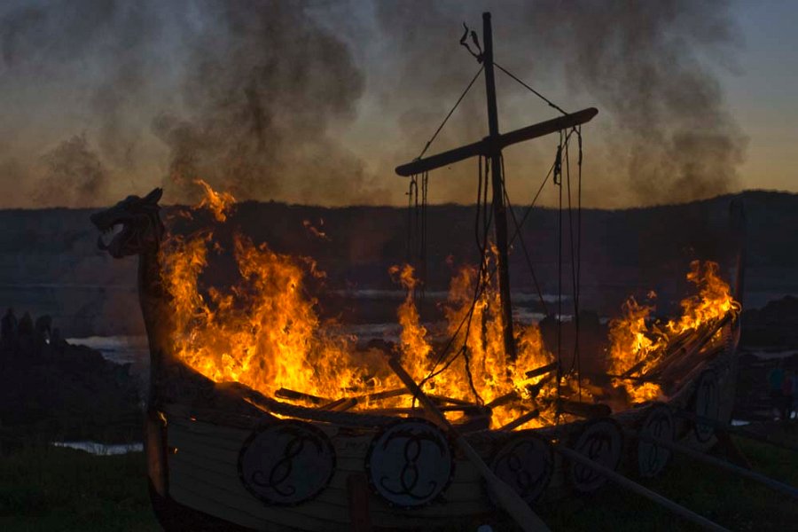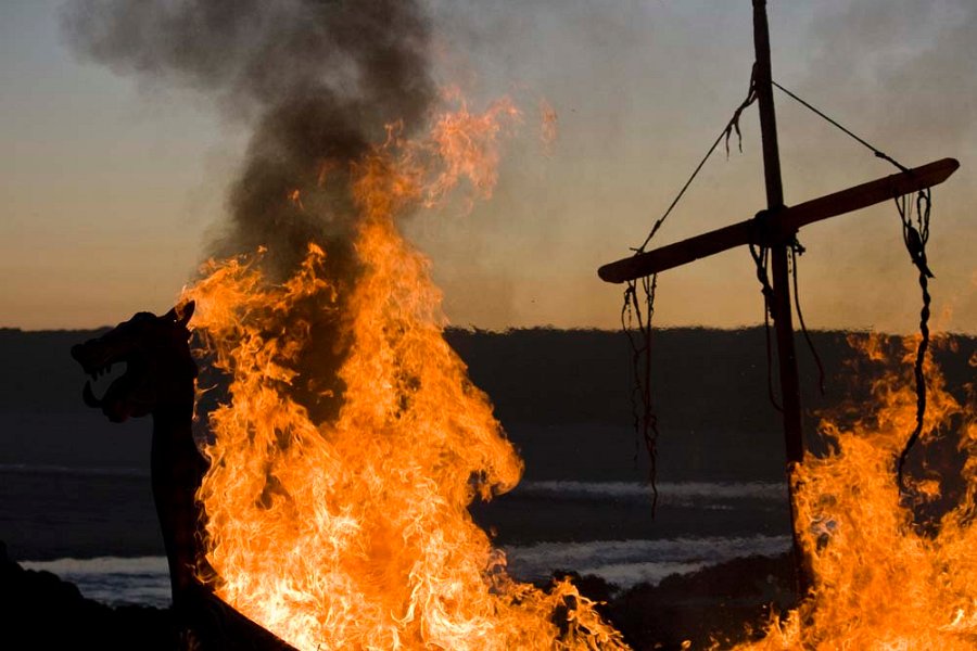 Burning of a "Viking Longship" at Port Erroll Harbour in August 2012 to mark the millennium of the Battle of Crochdane.